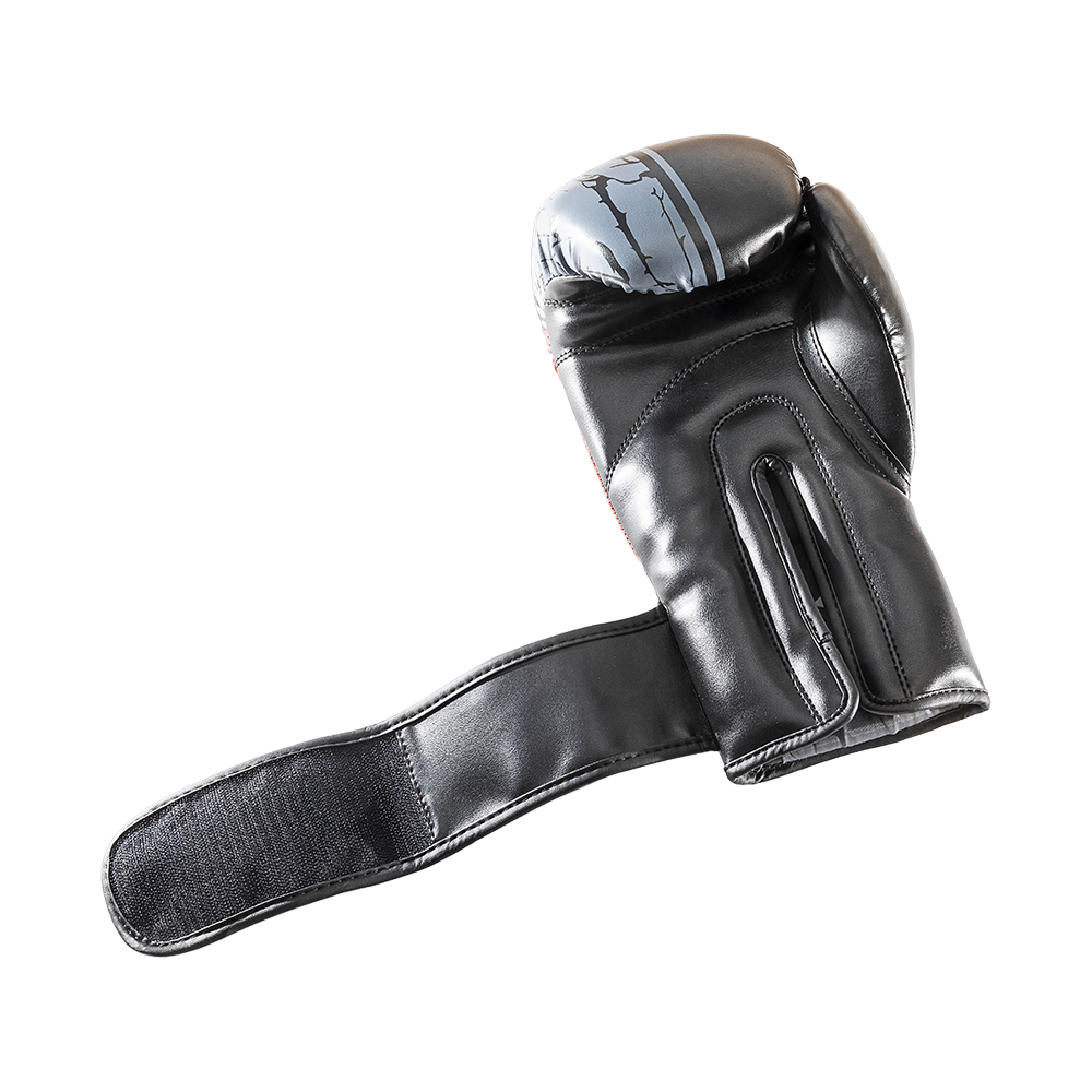 Zijkant bokshandschoenen van Knockoutgear Zwart-Rood-Grijs