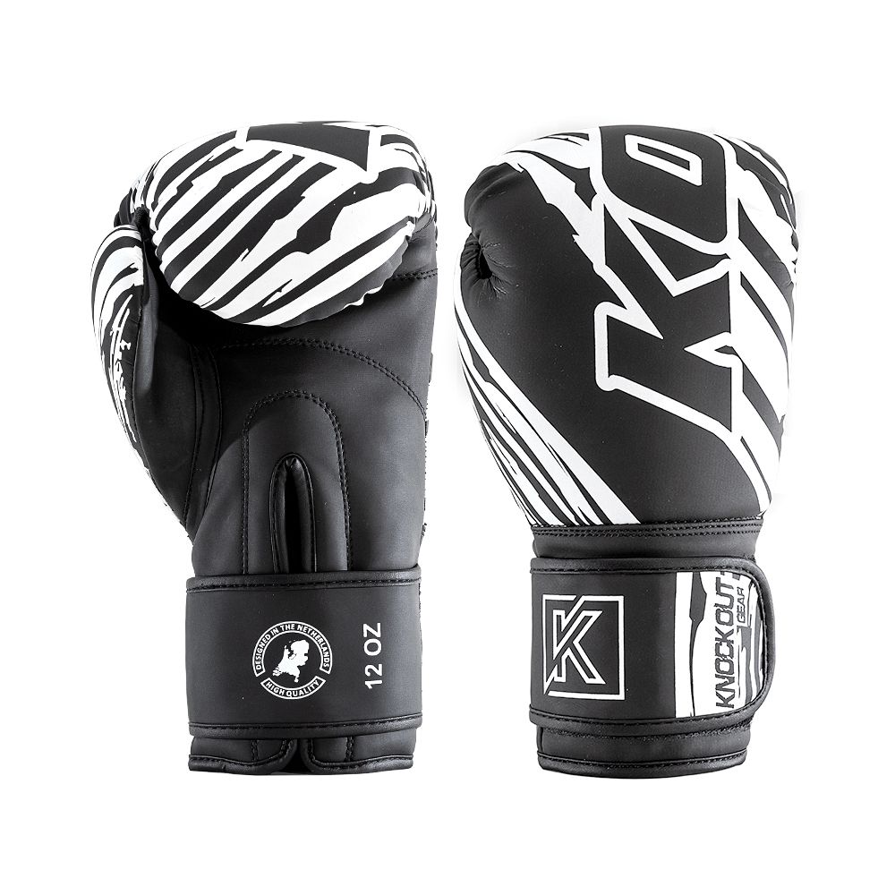 Voorkant liggend bokshandschoen van Knockoutgear Zwart-Wit
